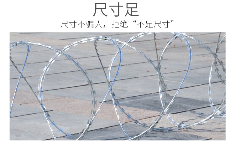 刀片刺繩的主要安裝范圍是在監(jiān)獄、圍墻、邊境哨所、軍事領域等等上面,采用優(yōu)質熱鍍鋅板經過沖壓、包裹而成,具有良好的抗腐蝕和防護能力。由于刀片刺繩表面具有鋒利的尖刺使得在安全防護上受到了客戶不斷好評。
